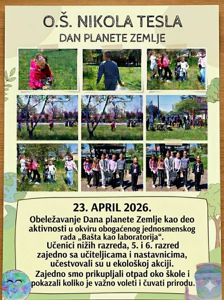 • 23.04.2026. – Еколошка акција поводом Дана планете Земље